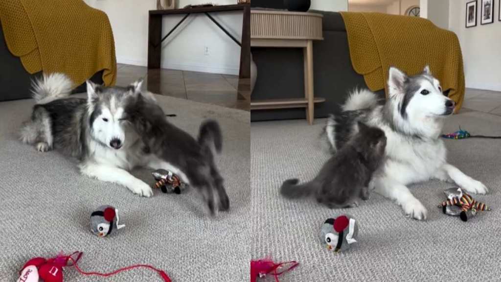 The post Husky Is a Gentle Big Brother to the Cat Every Time He Pounces appeared first on DogTime.
