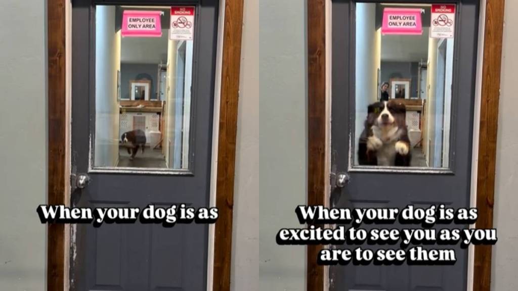 She doesn’t stop until a staff member finally walks up to the doorknob. In the video, the dog gives one last huge leap as the door finally starts to click open for her owner. Someone in the comments joked that this is just “Classical Berner” behavior. Another mentioned that they thought their own pet was the only one who overreacted like this.