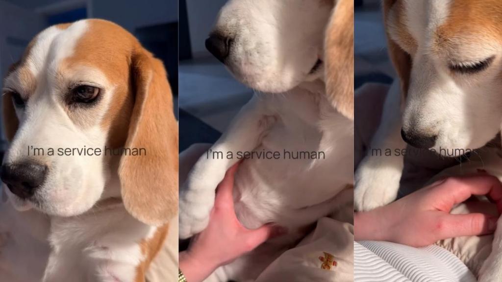 The movements repeat several times, turning a simple petting session into a humorous standoff. On-screen text reads, “I’m a service human,” accurately reflecting the dynamic on camera. Meanwhile, the post’s caption jokingly describes Mia as a “needy” Beagle, a label many viewers seemed to agree with in the comments.