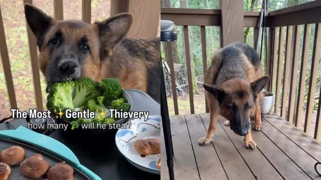 In a cute and funny dog video on Instagram, an owner records how their German Shepherd pulls a gentle food heist. It looks like the human is recording the clip while standing across the table, where they have set up a barbecue. Many vegetables and ingredients are chopped up and kept on the edges of the table due to a lack of space. This means the food is approachable to Rambo, a.k.a. Soup Baby.