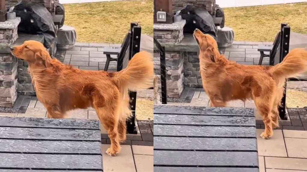 As soon as the clip begins, we see Todd planted on the patio stone with his tail held high. And while he stands steady, his fur is moving in every direction because of the heavy gusts. The text in the video sarcastically says it is just a “tad bit” windy in Michigan, but the Golden Retriever is totally loving it. He just stands there with a happy expression on his face.